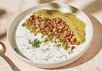 Չիա, հունական յոգուրտ, ավոկադո, բանան, դդմի սերմ, գրանոլա