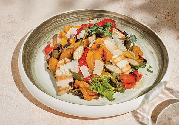 Հավի կրծքամիս, կապար, մարինացված պղպեղ, կանաչիների միքս, պարմեզան, բալզամիկ սոուս