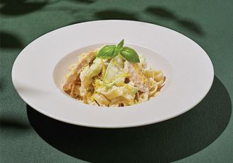 Հավի կրծքամիս, դդմիկ, կիտրոնի կեղև, սպիտակ սոուս, պարմեզան