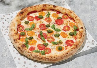 Լոլիկի սոուս, չերրի լոլիկ, պեստո, մոցարելլա, բազիլիկ