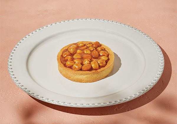 Շաքարե փխրուն խմոր, կարամելայի սոուսով և բոված պնդուկով։ Կարամելային սոուս՝ սերուցք , կարագ շաքարավազ