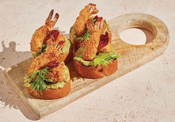 Բրուսկետա Ավոկադոյով և Ծովախեցգետնով